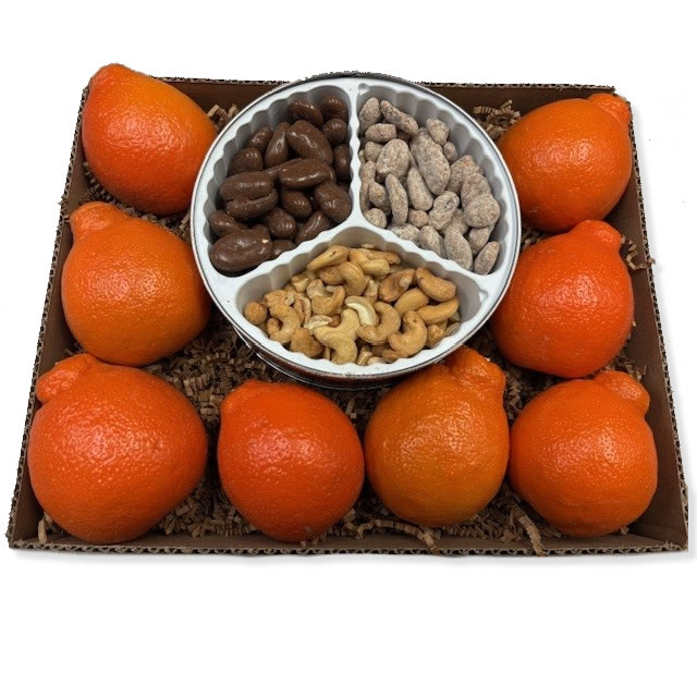 We created the ultimate sampler by combining our incredibly juicy Honeybells and Gourmet Nut Trio, featuring delectable creamy Chocolate covered Pecans, salted Whole Cashews, and sweet and crunchy homemade Praline Pecans.